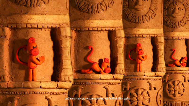 若孩子熟悉《西遊記》的孫悟空,那麼由〈哈奴曼讚歌〉發想的《'Chalisa'》將引領他們認識另一位神猴英雄,展開一段跨文化的小旅行。導演運用黏土逐格動畫為故事賦形,以溫暖的敘事調性呈現印度史詩中的正義之神哈奴曼。來自大地的黏土,不僅如同史詩承載生命厚度,也對應哈奴曼能自在變化身形的神力;片中保留黏土的原色與觸感,僅為哈奴曼及其法器與關鍵場景著色,使角色和情節在手作質地與神話意象之間流動,傳遞清亮而安定的力量。哈奴曼的形象兼具威儀與可愛,連同光影與節奏帶出的童趣,將宏大的史詩敘事化為親切靈巧的短片,輕啟想像;同時,聲音設計融合陶罐鼓、長笛與電子音樂,並以介於祈禱與遊戲之間的童聲吟唱重新詮釋,賦予古老禮讚輕快的活力。《'Chalisa'》不僅為傳世史詩帶來清新的面貌,富於表現力的影像和音樂亦足以跨越語言障礙,讓親子觀眾即使聽不懂讚歌,也能安心投入,愉悅享受這段小小的文化旅程。